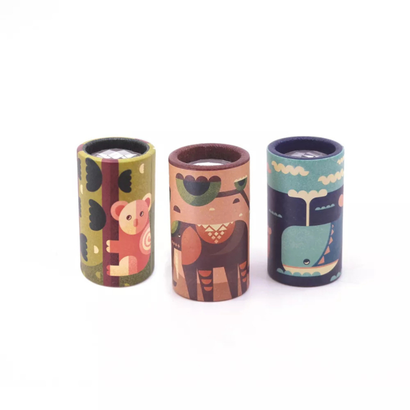 De wereld ziet er extra bijzonder uit met deze kaleidoscopen in zakformaat. Alles om je heen verandert in leuke en ongewone kaleidoscopische patronen en vormen. Voor zien van een illustratie met olifanten, wavlissen of koala's. Door het kleine formaat is hij makkelijk mee te nemen zodat je je op ieder moment kunt verwonderen, altijd en overal.
