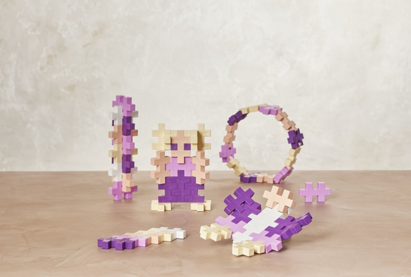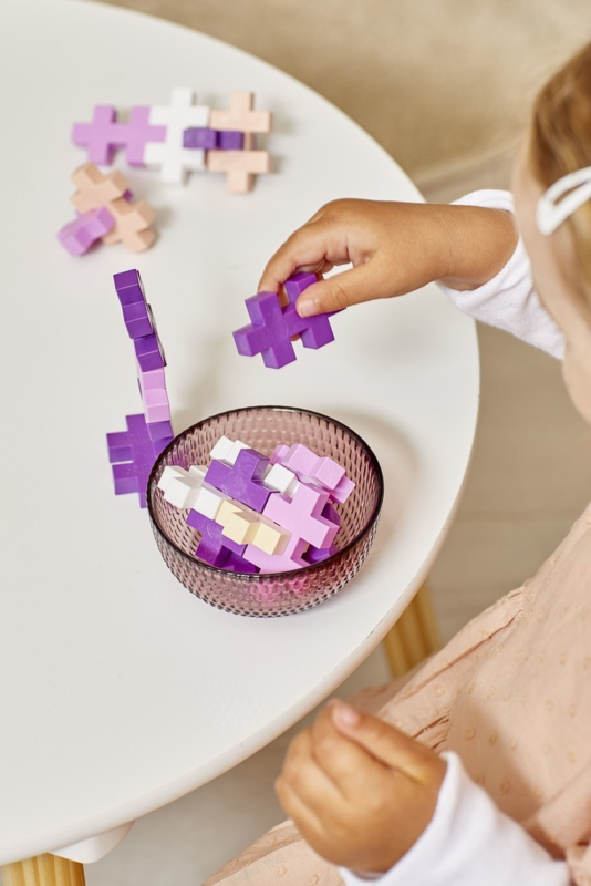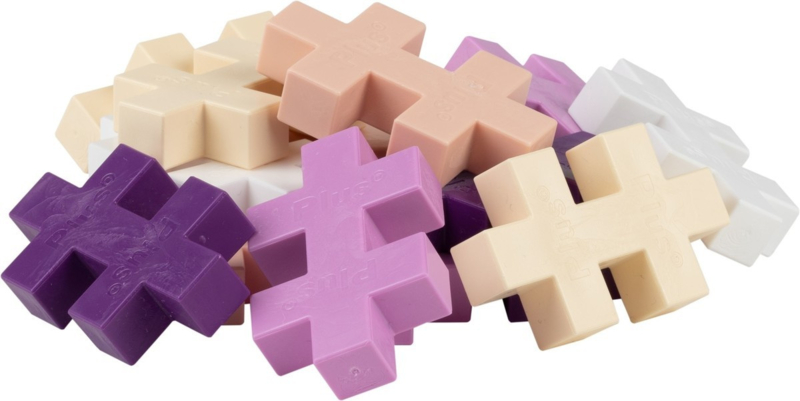 Koker bestaande uit 15 Plus-Plus BIG blokken in een zachte mix van paars en roze.