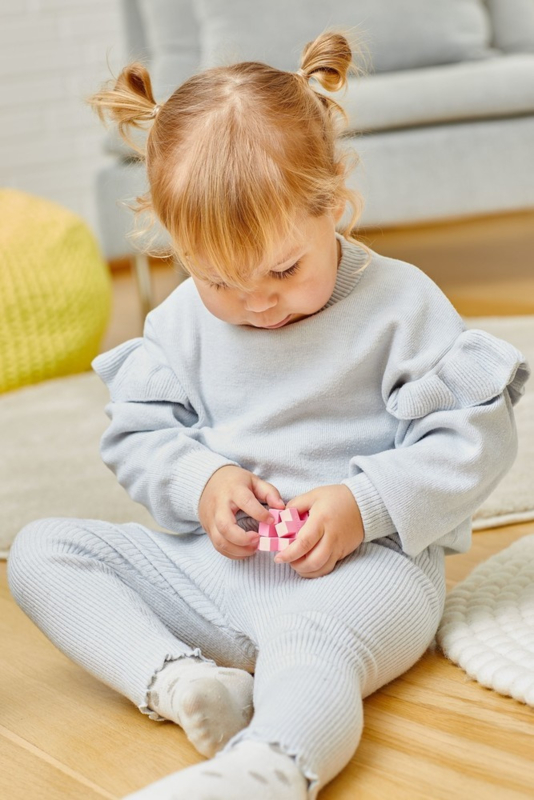 Een stoere kubusvormige box vol met Plus-Plus BIG stukken in een mix van pasteltinten.
