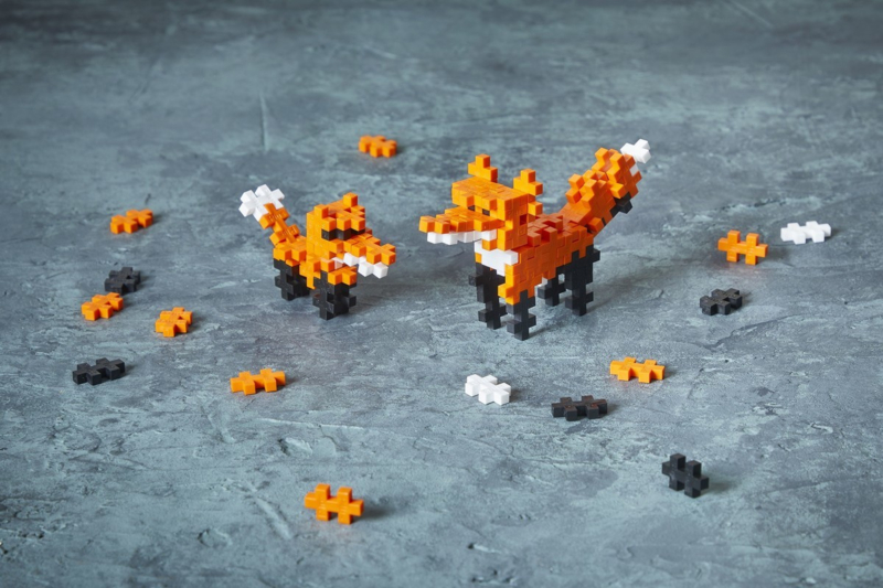 Koker bestaande uit 100 stukjes om de vorm van een vosje mee te bouwen. Inclusief bouwinstructie.