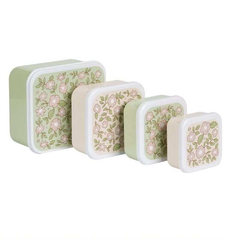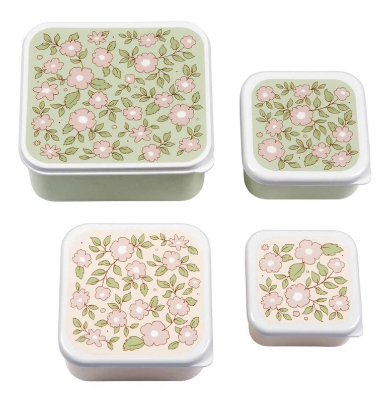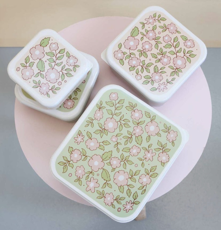 De deksels sluiten de trommeltjes luchtdicht af waardoor ze lekvrij zijn en de inhoud vers blijft. Met het lipje aan de zijkant is de deksel makkelijk te openen. Leeg passen de bakjes allemaal in elkaar waardoor ze efficiënt op te bergen zijn. Deze set heeft een lief bloemenprintje in een mix van roze en zachtgroen. De boxjes zijn niet geschikt voor de vaatwasser of magnetron.