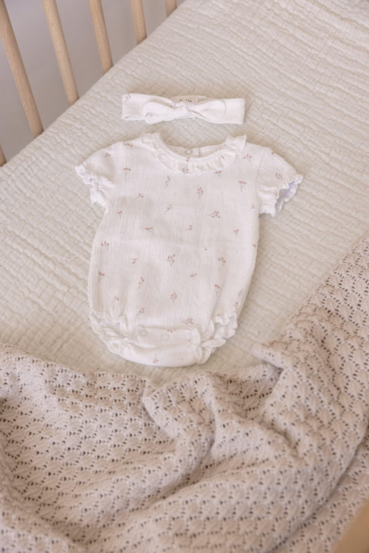 De Delicate Flower collectie van Feetje bestaat uit lieve roze en witte kleurtjes met een schattig, subtiel bloemenprintje.
