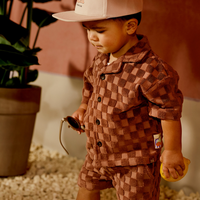Deze badstof short met ruitmotief in de kleur Blush Brown is een heerlijk zomers item. Combineer hem met de top in dezelfde stof of maak je eigen combinatie.