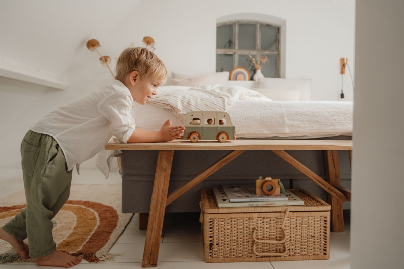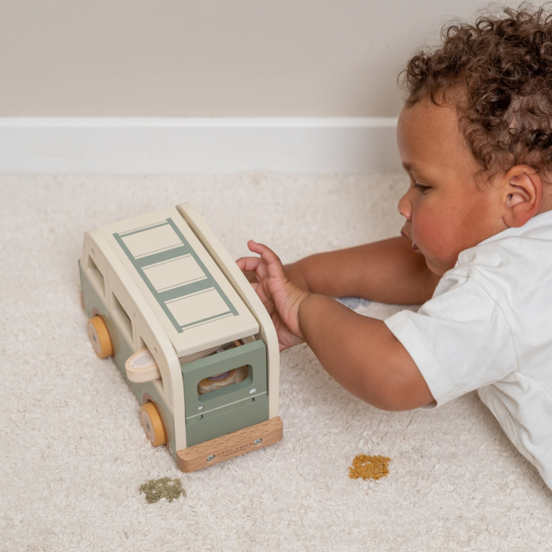 Hoe leuk is dit vintage houten speelgoedbusje van Little Dutch. Het busje is gemaakt van mooi stevig hout en heeft fijne zachte kleurtjes. Dat maakt hem niet alleen superleuk om mee te spelen, maar ook leuk als decoratie op de kinderkamer of in de speelhoek.