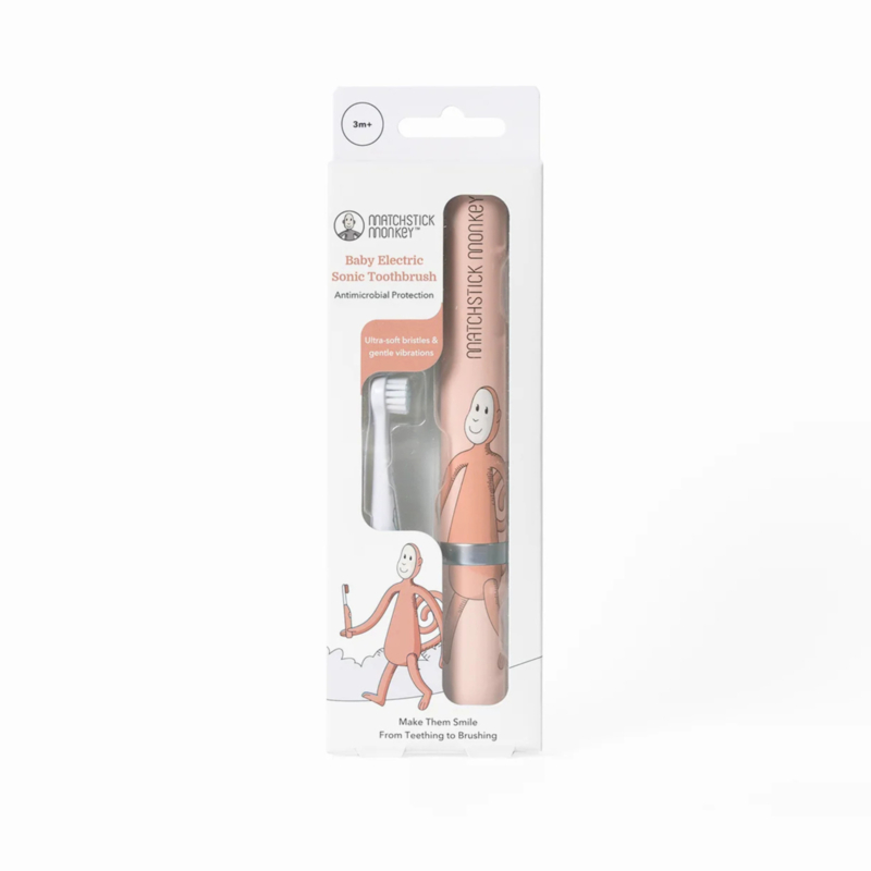 Matchstick monkey sonische tandenborstel | dusty pinkDe tandenborstel van het merk Matchstick Monkey is ideaal voor kindjes met doorkomende tandjes. Geschikt voor kinderen vanaf drie maanden en te gebruiken tot ongeveer 3 jaar. Deze sonische tandenborstel heeft een licht vibratie…